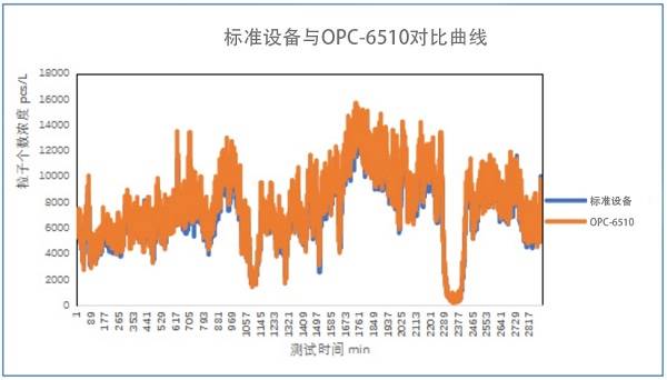 為了驗證在線塵埃粒子計數器是否能夠滿足實際應用需求,四方光電將樣品送到韓國第三方測試機構進行了OPC6510與標準設備委托對比測試,測試數據表明,OPC6510與標準設備線性相關系數R2=0.91,r=0.95。