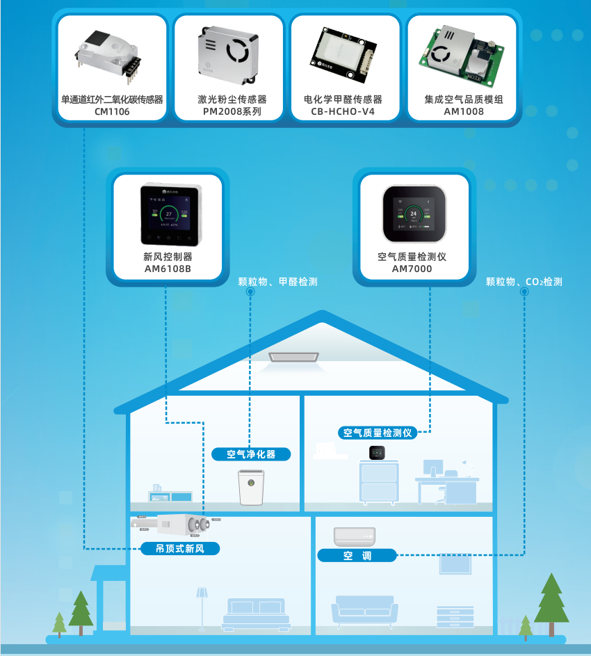 四方光電大力發(fā)展空氣品質(zhì)氣體傳感器在空氣凈化家電市場的配套。在室內(nèi)空氣品質(zhì)監(jiān)測應(yīng)用領(lǐng)域,基于十八年紅外NDIR技術(shù)的研究與創(chuàng)新,以及國內(nèi)外多家智能家電廠家的傳感器配套經(jīng)驗,四方光電相繼推出了單通道紅外二氧化碳傳感器CM1106、雙通道二氧化碳傳感器CM1107、雙光源紅外二氧化碳傳感器CM1109,可以滿足設(shè)備在各種應(yīng)用工況下的使用需求;并針對新風(fēng)系統(tǒng)及空調(diào)配套,專門開發(fā)了一款二氧化碳傳感器CM1106SD,經(jīng)過長期的市場沉淀,產(chǎn)品受到國內(nèi)外廣大客戶的認(rèn)可。還有激光型PM2.5傳感器、甲醛傳感器、VOC傳感器和新風(fēng)控制器等,可以根據(jù)客戶的差異化需求提供多種傳感器的集成方案。