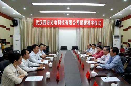 2012年10月10日下午,四方光電股份有限公司向中國地質大學(武漢)捐贈儀式在該校迎賓樓3號會議室舉行。公司向中國地質大學(武漢)捐贈100萬元,設立“四方獎學金”,用于獎勵該校在籍的優秀本科生。公司董事長、總經理熊友輝,中國地質大學(武漢)教育發展基金會理事長張錦高,副校長萬清祥出席了儀式。儀式由校教育發展基金會秘書長陶繼東主持。