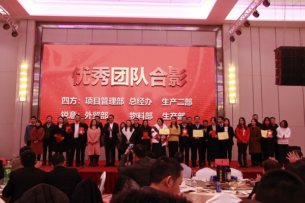 下午4點,“2019年度總結暨表彰大會”在紐賓凱怡都國際酒店會議中心大廳舉行,共頒發了優秀員工獎、優秀新人獎、銷售之星獎、技術之星獎,以及優秀管理者、優秀團隊、突出貢獻獎,共8項榮譽獎項,受表彰人數達41人,6個團隊。