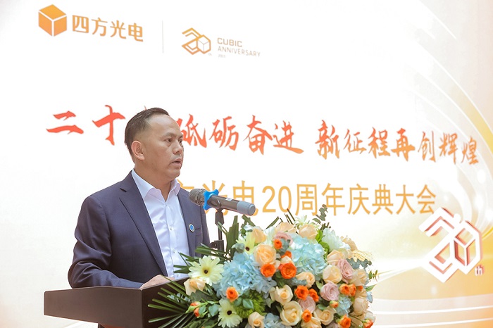 2023年5月22日,四方光電20周年慶典大會在四方光電技術中心隆重舉行。四方光電董事長熊友輝博士、總經理劉志強等公司高管,以及在公司工作滿3年以上的員工代表參加了本次大會,大會由總經理劉志強主持。