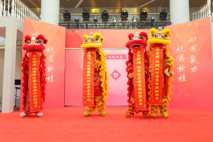 大會(huì)在一片熱烈的氛圍中拉開帷幕。由四方光電員工舞獅隊(duì)精心編排的“靈蛇獻(xiàn)瑞”和“祥獅送福”表演,以其獨(dú)特的魅力和磅礴的氣勢(shì),瞬間點(diǎn)燃了現(xiàn)場(chǎng)的熱情。緊接著,現(xiàn)場(chǎng)播放了2024年公司十大事記回顧視頻:從技術(shù)創(chuàng)新的突破到市場(chǎng)的拓展,從重大榮譽(yù)的獲得到人才團(tuán)隊(duì)的建設(shè),再到企業(yè)戰(zhàn)略布局的穩(wěn)步推進(jìn),每一個(gè)瞬間都凝聚著四方光電人的智慧與汗水,展示了公司的蓬勃發(fā)展和無限潛力。
