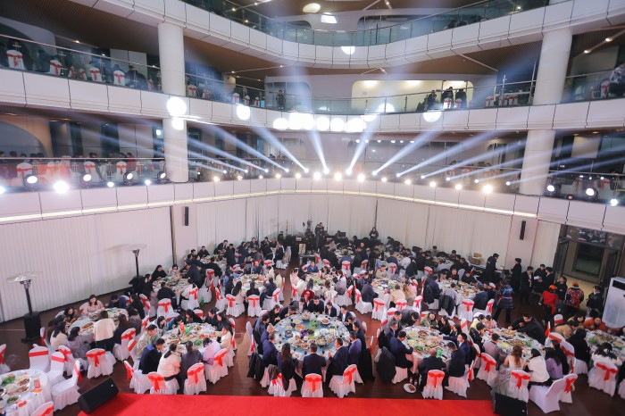 年會(huì)最后,全體員工齊聚技術(shù)中心中庭,共享團(tuán)年飯。大家舉杯同慶,為過去一年的辛勤付出和取得的輝煌成就歡呼喝彩。在歡樂祥和的氛圍中,大家共同許下心愿:繼續(xù)攜手并進(jìn),四方聚力,億啟新程,用拼搏與智慧書寫四方光電更加輝煌燦爛的明天!