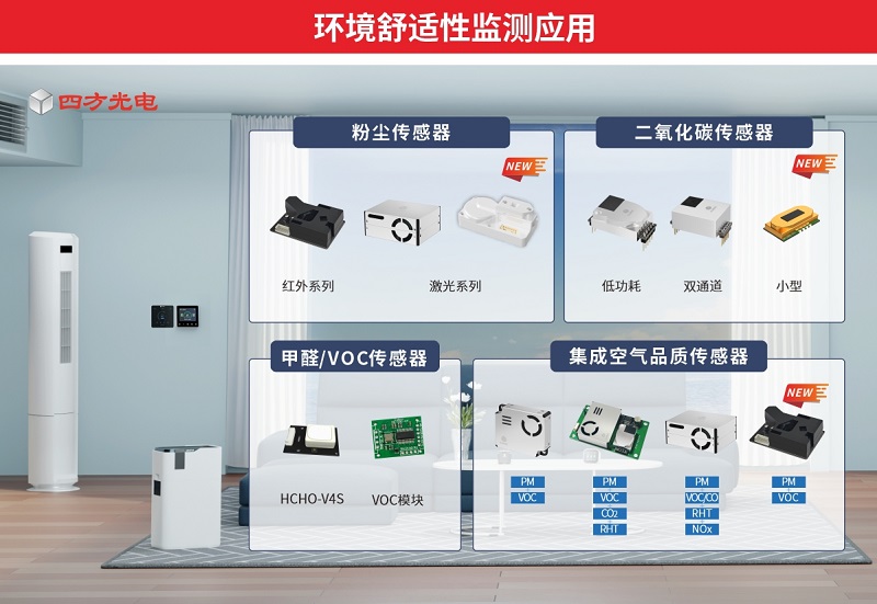 在室內空氣質量監測領域,四方光電2010年最早在國內推出激光PM2.5傳感器和紅外CO2傳感器,通過15年的深耕應用,持續產品創新升級,已經形成了紅外和激光PM2.5傳感器、紅外CO2傳感器、基于MEMS的VOC傳感器、抗干擾甲醛傳感器等豐富的產品品類。另外,通過技術的有機組合和供應鏈的垂直整合,公司推出集成空氣品質傳感器模組、露點傳感器、溫控器、線控器,通過定制化設計服務,滿足客戶差異化的應用需求。2024年初,公司憑借在汽車健康座艙的產品應用經驗和客戶體驗,將已經在汽車上大批量使用的負離子發生器、等離子發生器、香氛發生器推廣到暖通空調領域,實現了技術和應用場景的交叉融合,滿足終端客戶的多元化需求。
