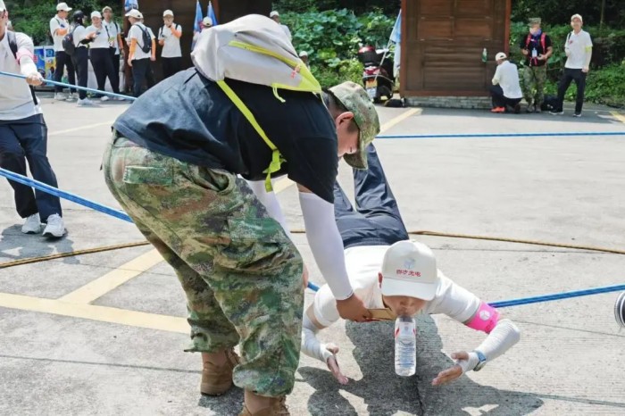出征儀式結束后,隊員們迎來本次淬煉之旅的第一個挑戰——清江方山8.5公里徒步。參訓人員互幫互助,克服山路、高溫、降雨等自然挑戰,直面懸崖玻璃棧道恐懼。行進中各支隊伍穿插完成多項團隊協作項目,在"雷區取水"中展現智慧與默契,在"穿越封鎖線"中培養信任與配合,通過"盲人方陣"磨練溝通技巧,借助"步步高升"提升協作能力。各支隊伍還圓滿完成了微電影拍攝任務,大家群策群力、各展所長,用鏡頭記錄下這段難忘的淬煉時光。