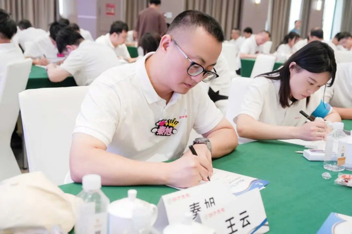 7月13日,團建進入收官之日,全體成員展開了一場富有成效的深度復盤會。會上各小組通過團建沉浸式回顧、領導力深度對標、遷移落地等環節,圍繞“領導力五項行為實踐”客觀剖析個人及團隊表現,精準識別優勢與待提升環節。各小組立足生產運營交付過程中的管理痛點,群策群力共創解決方案,將智慧結晶凝練于“雙循環學習卡”中,并簽署個人領導力承諾書。