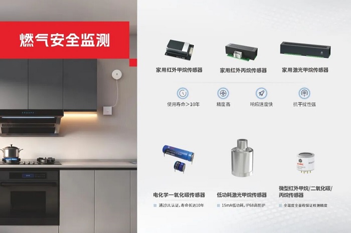 家用紅外 / 激光甲烷傳感器、一氧化碳傳感器、低功耗激光甲烷傳感器等核心產(chǎn)品,可精準(zhǔn)監(jiān)測(cè)燃?xì)庑孤⒂卸練怏w濃度等風(fēng)險(xiǎn),適配家庭廚房、燃?xì)夤艿赖榷鄨?chǎng)景,響應(yīng)速度快、檢測(cè)精度高,從源頭規(guī)避安全隱患,精準(zhǔn)守護(hù)家庭與工商業(yè)場(chǎng)景用氣安全。