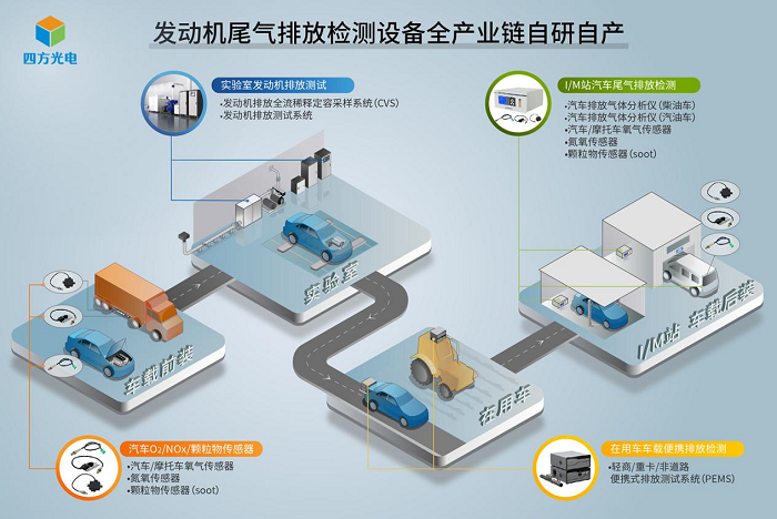 針對現狀,各大國產儀器公司也在全力以赴,用實際行動推動發動機排放測試設備全產業國產化進程。特別值得一提的是,科創版上市公司四方光電(股票代碼688665)針對國產發動機排放檢測設備現狀及相應的市場需求,自主完成實驗室排放檢測系統和道路測試用便攜式排放檢測系統(PEMS)的研發和生產,形成了從發動機實驗室排放檢測系統、便攜式排放檢測設備、I/M站檢測設備,到終端用戶汽車發動機尾氣后處理系統用O2及NOx傳感器的發動機排放檢測的完整解決方案。