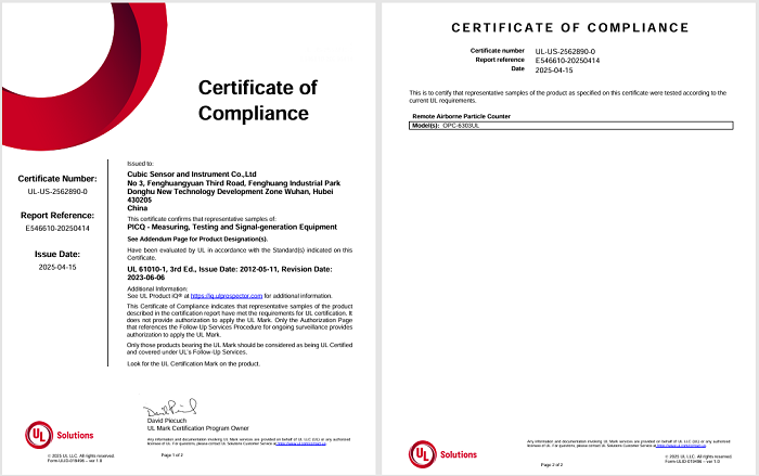 近期,四方光電塵埃粒子計數器 OPC-6303UL 通過了 UL 61010-1 的測試,獲得 UL 的正式認可。這不僅是對產品質量和安全性的認可,也為其在國際市場的推廣提供了有力支持。