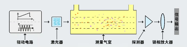 TDLAS(可調諧二極管激光吸收光譜)是一種高精度的氣體檢測技術,利用氣體分子在特定近紅外波長的吸收特性,通過激光穿過氣體時被吸收的光強衰減量計算氣體濃度。